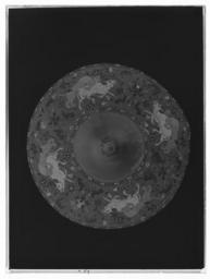 | Keywords: Rörsköld - Kalkan - Livrustkammaren - 60063-negative.tif Rund sköld uppbyggd av 42 stycken synliga ringformade vidjor av fikonträ lindade och broderade med silkestråd i rött grönt gult svart grått och vitt <br/>All kanttråd fäst i längs fiberriktningen rakt dragna skåror i träet Kanttråden till alla figurer och ornament fästad på detta sätt möjligen även den röda bottentråden <br/>Yttersta ringen med dekor av parvis oregelbundna ornament i rött mellan dessa rektangel i svart med i mitten likarmat kors i vitt Detta mot botten i gult Nästa ring helt i grönt Därefter större fält med djur över slingrande växter Fyra större grupper av oxe i svart med vita horn och ögon bakifrån attackerad av panter i grått med vita ögon och klor Mellan dessa två olika grupper av i mitten stiliserad växt med i de fyra hörnen ett hunddjur vid sköldens inre kant sittande och mot yttre kanten i rörelse Hundarna i gult med svart kant vita ögon och i vissa fall svarta öron Grupperna skiljer sig åt genom djurens utseende och detaljer Av totalt 16 djur saknar tre helt ifyllda detaljer i svart De tre översta ringarna närmast sköldbucklan är heltäckande grön gul med dekor som nertill och heltäckande grön Då sköldbucklan sitter snett kan även en ytterligare heltäckande röd ring ses från ett håll <br/>Undersida av grön sammet I kanterna fyra rostbruna metallöglor på konturerad stålplatta Mot ena sidan två liknande och tätare placerade öglor mellan dem ett flätat snöre av grön silkestråd med i ena änden tofs <br/>I mitten fyrkantig stoppad kudde puta av röd sammet 185 x 195 mm Undersidan klädd med ett ljusare rött tyg än ovansidan I varje hörn genom putan en fästad ögla med snöre i orange och blått Snörena möts och är fäsade i en lös ring över kuddens mitt <br/><br/>Sköldbuckla rund och välvd i stål diam ca 140 mm h ca 90 mm I yttre kant dekorativt band av förvanskade arabiska skrivtecken b 11 mm Upptill avslutad med rund knopp diam nertill 34 mm h 38 mm Svagt avsmalnande uppåt med konisk topp Runt knoppen 19 mm brett band av arabesk Sidorna med dekor av samma förvanskade skrivtecken som tidigare Den koniska toppen täckt med arabesk All dekor av påslaget guld mot mörk botten Fäst i nederkantkant med fyra mässingsstift <br/><br/>Förgyllda och dekorativa ornament sammanlagt tio stycken sex längs nedre kant och fyra runt bucklan Konturerade kanter med i mitten åttbladig blomma mot prickpunsad botten diam 19 mm Ornamenten utgör fästen för öglorna på sköldens baksida original caption rörsköld - Kalkan - LRK 10607 Erövringen av Prag century 16 steel - velvet Färg grön röd material sammet size mm 595 size mm 250 mittplatta ca LRK Kristina av Sverige Abbas I Shah av Persien Rudolf II Tysk-romersk kejsare Persisk konst i Sverige 1973 Livrustkammarens basutställning 1978 Islamiskt i de kungliga samlingarna 1984 Kungens lockpipa 1995-1996 Sweden and Europe 1632-1792 2003-2004 Krigsbyte 2007-2008 Basutställning place of origin original filename LN_A01397_001397 47190 inventory number LRK 10607 60063 CC0 Rörsköld - Kalkan - Livrustkammaren - 60063 tif <gallery caption Different images of same object > File Persisk sköld kalkan 1500-talets slut Förmodat krigsbyte från Prag 1648 - Livrustkammaren - 60812 tif File Persisk sköld kalkan 1500-talets slut Förmodat krigsbyte från Prag 1648 - Livrustkammaren - 69021 tif </gallery> |
