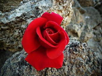 Keywords: rosa red rose flower petals red beautiful rock stone nature garden warmth plants