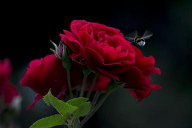 Keywords: rose bee fly spray dark black background flower nature background flowers black spring bug sheet leaves red netherlands plant plants blossom bloom flourish garden branch