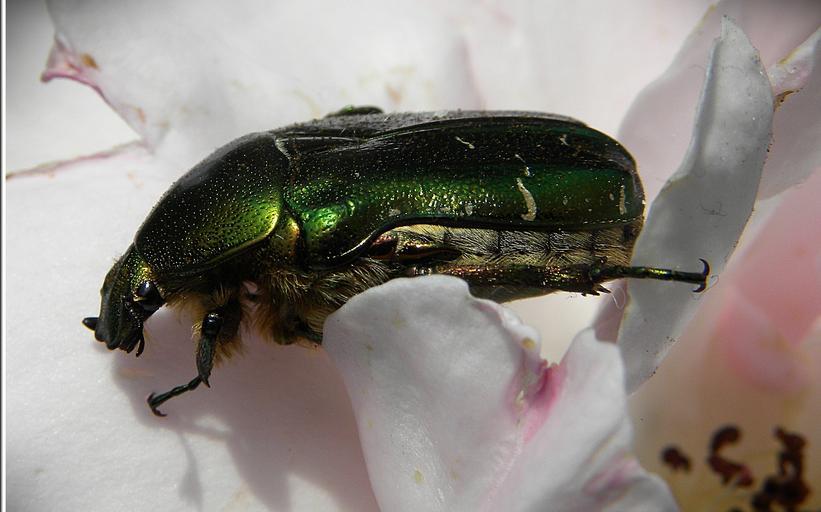 Keywords: rose beetle green iridescent macro insect worm