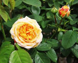 Keywords: rose bloom and bud shrub rose filled rose cream fragrant blossom bloom flower plant cream colors garden flora botany close petals summer schnittblume rose bloom blossomed yellow rose
