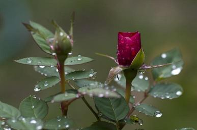 Keywords: rose bud pink green drop of water raindrop drip dew