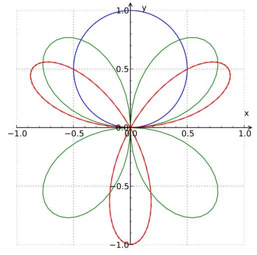 Keywords: Rose curve1.svg en Rose curves 2011-09-02 own Krishnavedala The legends - Blue <math>r sin \theta </math> - Green <math>r sin 2\theta </math> - Red <math>r sin 3\theta </math> cc-zero Uploaded_with_UploadWizard Rose_curves