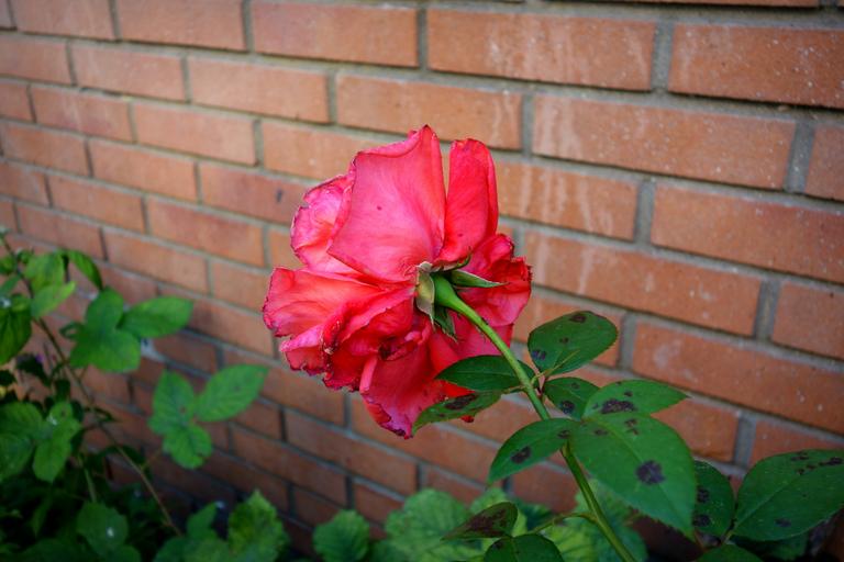 Keywords: rose flower bloom romantic love wedding red rose wall rose at wall urban urban setting