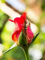 Keywords: rose flower blossom bloom red small caterpillar eat
