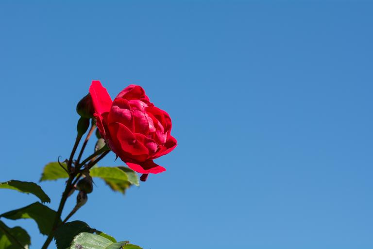 Keywords: rose flower red red rose red flower blossom bloom garden in the garden sky summer plant nature close text freedom copy space negative space