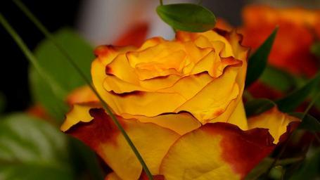 Keywords: rose flower yellow orange red petals plant bloom multi coloured