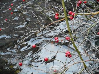 Keywords: rose hip fruit water aesthetic mirroring branch blossom bloom red bush nature autumn bright thorn beautiful postcard mood macro bud background close