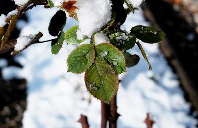Keywords: rose petals leaves drip crystals winter