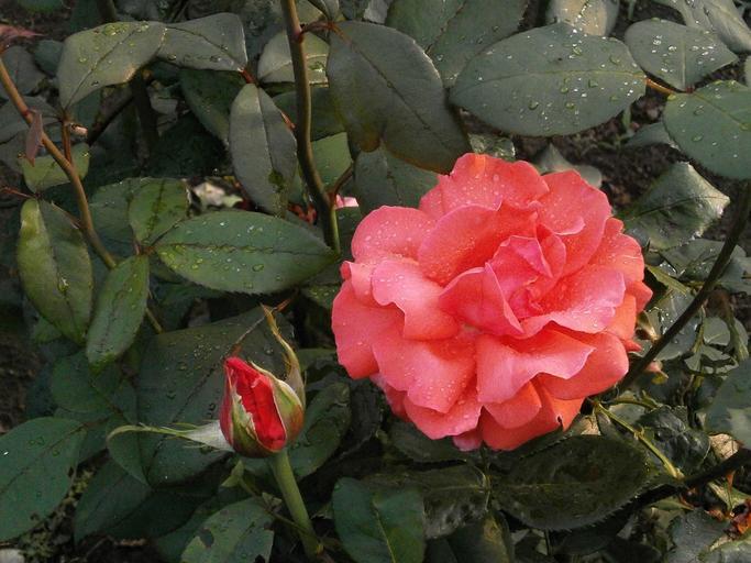 Keywords: rose pink flower after the rain rose garden