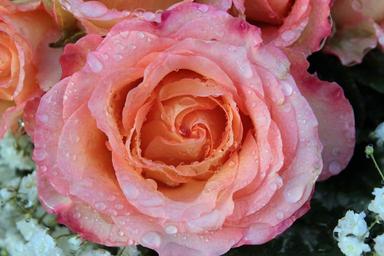 Keywords: rose rose bloom flower pink blossom bloom fragrance romantic raindrop gypsophila