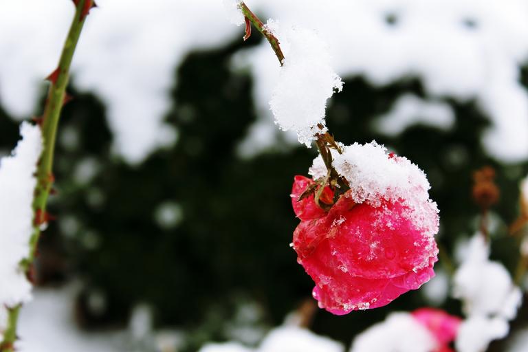 Keywords: rose snow winter nature red covered blossom bloom ice flower plant love close emotion pink branch white snowy cold thorns icy wintry frost
