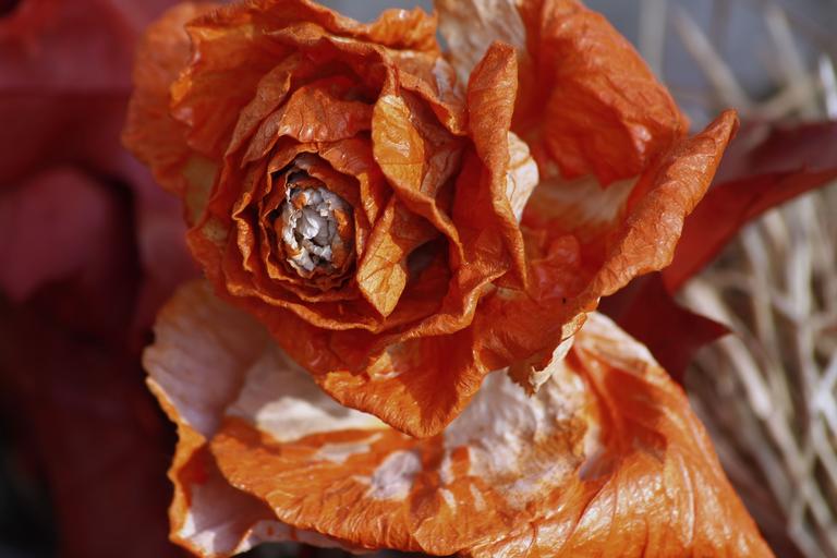 Keywords: rose trockenblume flower nature flora rose family close bodnar orange red flowers dried color blat leaves