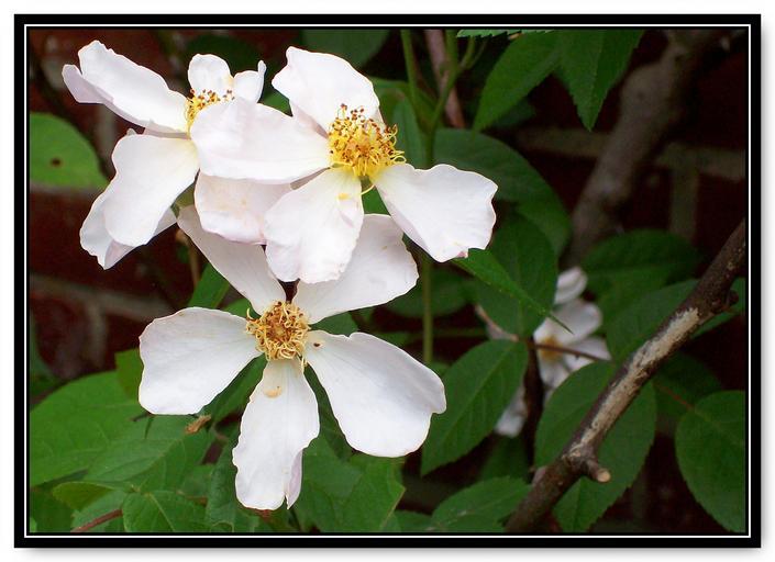 Keywords: rose white single petal old fashioned nature garden cluster three trio
