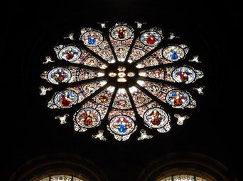 Keywords: rose window window glass colored glass church cathedral embrun provence france art romanesque style sacred art architecture light color ancient monument