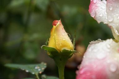 Keywords: rosebud orange drop of water