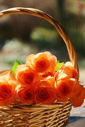 Keywords: roses blossom bloom flowers plant lichtspiel close nature salmon schnittblume light and shadow basket flora