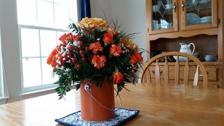 Keywords: roses flowers centerpiece dining table bouquet pink romantic gift romance country present wooden decorative