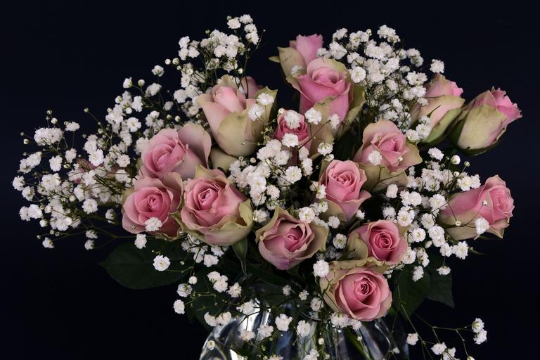 Keywords: roses rose flower flowers pink white gypsophila flower nature bouquet of flowers bouquet thank you love wedding wedding day