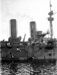 | Keywords: RossiaSideDamage.jpg en Close-up of amidships damage suffered by the Russian armored cruiser Rossia during the Battle of Ulsan ru Пов еждения б оненосного к ейсе а Россия после боя 1 августа 1904 года http //books google com/books id x71MAAAAYAAJ printsec frontcover dq klado ei LvPcS-PeEIPclQTw1J2fCA cd 1 v onepage q f false<br />http //tsushima su/uploads/photoarhiv/ships/russia/epoch_bron/brkr/rossia/photo/04 jpg Author 1904-08-01 PD-old-100 Rossiya ship 1896 | ||||