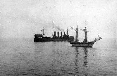 | Keywords: Rossiya&AiyaMaru1905baloon.jpg en Imperial Russian cruiser Rossiya and Japanese schooner Aiya Maru 26 Aprel 1905 ru Б оненосный к ейсе Россия и остановленная им японская шхуна Айя а у 26 ап еля 1905 года http //navsource narod ru/photos/02/014/02014025 jpg ru А хив фотог афий ко аблей усского и советского В Ф ru еизвестен ru 26 ап еля 1905 года PD-RusEmpire PD-Old Rossiya ship 1896 Sailing ships of Japan Military observation balloons | ||||