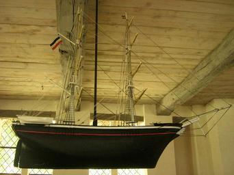 | Keywords: Rostocker-Wulfshagen-Kirche-Votivschiff-12-07-2008-009.jpg de Votivschiff von 1861 in der Kirche zu Rostocker Wulfshagen Der Matrose Suhrbier überreichte der Kirche das Modell als Geschenk und Dank für eine glückliche Heimkehr von einer Seereise own 2008-07-12 Botaurus de German Wikipedia Botaurus Church in Rostocker Wulfshagen Models of ships in churches in Germany | ||||