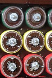 | Keywords: Rotating upper bombe drum.jpg en Drums on the rebuilt Bombe in action The upper 'fast' drum corresponds to the left-hand Enigma rotor No III the middle to the middle rotor No IV and the bottom one to the right hand rotor No I My own photograph TedColes 2011-04-10 Cc-zero Bletchley Park Bombe |