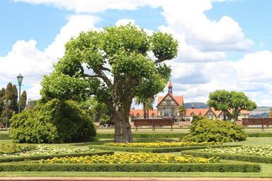 Keywords: rotorua new zealand north island nature landscape government gardens garden park of course museum tree sky clouds blue green maintained english garden museum building summer good weather