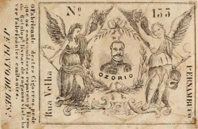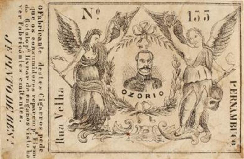 | Keywords: Rótulo de cigarro. Manuel Luiz Osório.JPG Rótulo de cigarro Manuel Luís Osório Fundação Joaquim Nabuco http //www dominiopublico gov br/pesquisa/DetalheObraForm do select_action co_obra 19267 unknown author PD-old A coleção Brito Alves é composta de 1 252 rótulos de cigarros na técnica litográfica Foi iniciada pelo comerciante Vicente de Brito Alves e continuada pelo seu filho o advogado pernambucano José de Brito Alves 1887-1963 Em 1964 a coleção foi doada pela família ao então Instituto Joaquim Nabuco de Pesquisas Sociais Constitui-se em um raro e valioso patrimônio cultural e artístico registrando fatos históricos usos costumes e aspectos da vida cultural da sociedade brasileira e particularmente da pernambucana no final do século XIX até as primeiras décadas do século XX Manuel Luís Osório Cigarette cards |