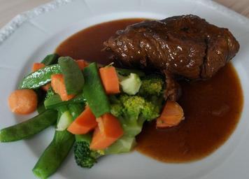 Keywords: roulades beef roulades meat rolls meat braising cook beef oven eat food vegetables beans carrots villa taioli tasty green orange