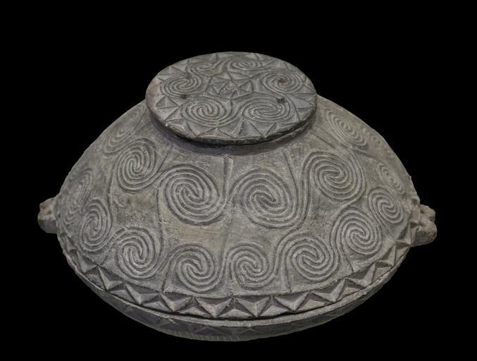 Keywords: Round jewel box archmus Heraklion.jpg en Round jewel box from Mochlos and Zakros Gorge of the Dead 2600 - 2300 BCE fr Boîte à bijoux ronde de Mochlos et Zakros Gorge de la Mort 2600 - 2300 BC Institution Archaeological Museum of Heraklion 2015-02-23 11 14 37 own Jebulon other versions cc-zero Uploaded with UploadWizard Round objects Black background Spirals Quality images by Jebulon Pyxis from Gorge of the Dead in AM Heraklion Archaeological Museum of Heraklion - Minoan pottery QualityImage