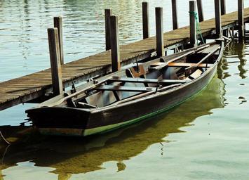 Keywords: rowing boat boardwalk jetty boot individually wood calm quiet water