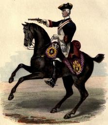 | Keywords: Royal Horse Guards uniform, 1742.jpg Royal Horse Guards uniform in 1742 Published 1847 Edmund Packe 1847 https //archive org/stream/historicalrecord00packiala page/n105 An Historical Record of the Royal Regiment of Horse Guards or Oxford Blues London Parker Furnivall Parker p 77 Standidge Co lithographer PD-old-100-1923 Historical uniforms of the British military Military uniforms of the United Kingdom 18th century Royal Horse Guards Uniforms of the British Army | ||||