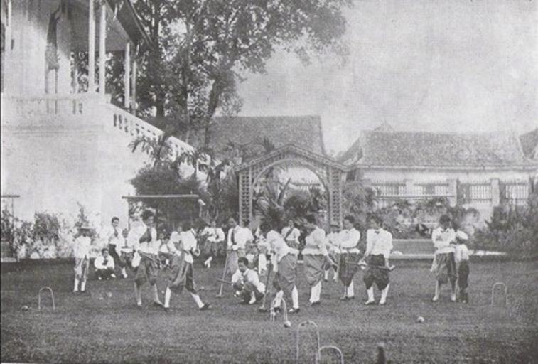 | Keywords: Royal Ladies within the Inner Court.jpg en Royal Ladies playing croquet within the Inner Court of the Grand Palace Bangkok ca 1890 http //board postjung com/data/568/568286-topic-ix-0 jpg Author custom PD-Thailand Uploaded with UploadWizard Princesses of Thailand |
