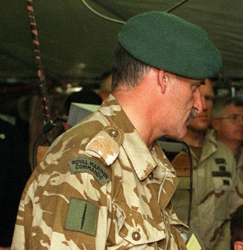 | Keywords: Royal Marine Commando wearing his green beret.jpg thumb Commando officer of Her Majesty's Royal Marines United Kingdom tells of his units' experiences in fighting Taliban and al-Qaeda forces in the mountains of Afghanistan during a briefing at Bagram Air Base Afghanistan on April 27 2002 to US Secretary of Defense Donald H Rumsfeld not in this picture 2002-04-27 thumb Creator Robert D Ward PD-USGov People of the Royal Marines Robert D Ward April 2002 in Afghanistan April 2002 photographs People associated with the War in Afghanistan 2001-present |