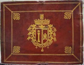 | Keywords: ROYAL MUSIC COLLECTION. Colonna (Pompeo) Prince of Gallicano. Proserpina rapita; late 17th century. An opera in 5 acts, written circa 1645 to the words of Ottaviano Castelli. -Collection Are - Upper cover (RM23f8).jpg Style Armorial Panel design; Caption Upper cover; Colour Red; Edge Gilt exhibition history Decorative Technique Tooled in gold; Cover Material Goatskin includes morocco turkey etc In original binding bearing the arms of Colonna and D ™Avalos object history Text 17c; Italy; Colonna object type Cc-zero place of creation Binding Italy place of discovery Unspecified British Library image http //www bl uk/catalogues/bookbindings/LargeImage aspx RecordId 020-000016835 ImageId ImageId 55986 Copyright BL ROYAL MUSIC COLLECTION Colonna Pompeo Prince of Gallicano Proserpina rapita; late 17th century An opera in 5 acts written circa 1645 to the words of Ottaviano Castelli Collection Area Music Collections Pompeo Colonna Prince of Gallicano; composer 'Proserpina rapita' opera late 17th cent Ital Autogr Uploaded with GWToolset ROYAL MUSIC COLLECTION Colonna Pompeo Prince of Gallicano Proserpina rapita; late 17th century An opera in 5 acts written circa 1645 to the words of Ottaviano Castelli Collection Are - Upper cover RM23f8 http //www webarchive org uk/bldatasets/bindings/km23f8 jpg Bookbinding 17th-century bookbinding British Library Bookbindings |