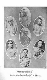 | Keywords: Royal portraits - 001.jpg en <br> Cover of the Book The Royal Portraits of HM the King and Queen and the Princes of the Royal Family with the Portraits of the High Rank Officers who hold the Important Positions of State at Present พระบรมฉายาลักษณ์ พระฉายาลักษณ์ จ้านาย แล สวกามาตย์ราชบริพารชั้นสูง อันดำรงตำแหน่งสำคัญในราชการแห่งสยามปัจจุบัน literally The Portraits of Their Majesties Members of the Royal Household and High-Ranking Public Officers of the present Siam <br> The caption on the page reads พระบรมฉายาลักษณ์พระบาทสม ด็จพระ จ้าอยู่หัว ๗ รัชกาล The portraits of the seven kings <br> The image is derived from the http //www homebankstore com/dl/ebookthbl/118 pdf book provided in pdf form by the Wang Tha Phra Library of Silpakorn University 2011-11-25 own Aristitleism PD-Thailand PD-TH-exempt Uploaded with UploadWizard The Royal Portraits of HM the King and Queen and the Princes of the Royal Family |