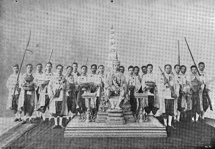 | Keywords: Royal portraits - 004 02.jpg en King Prajadhipok of Siam wears full traditional monarchical attire in his coronation He sits on the Phatthrabit Throne พระที่นั่งภัทรบิฐ inside the Phaisan Thaksin Hall พระที่นั่งไพศาลทักษิณ and is surrounded by the court officers carrying his regalia and supplementary insignia including the Eight Weapons พระแสงอัษฎาวุธ 2011-11-25 own Aristitleism File Royal portraits - 004 01 jpg PD-Thailand PD-TH-exempt Uploaded with UploadWizard The Royal Portraits of HM the King and Queen and the Princes of the Royal Family Thrones of Thailand |