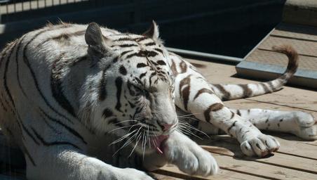 | Keywords: Panthera tigris tigris. CC0 waiver: To the extent possible under law, I waive all copyright and related or neighboring rights to this work. Panthera tigris tigris. CC0 waiver: To the extent possible under law, I waive all copyright and related or neighboring rights to this work. Royal White Bengal Tiger cleaning self at Cougar Mountain Zoological Park 1.jpg en Closeup of a Royal White Bengal Tiger cleaning itself lying in its habitat at Cougar Mountain Zoo Own Dcoetzee 2009-07-03 15 30 56 47 33 11 N 122 4 49 W region US cc-zero White tigers at Cougar Mountain Zoo Panthera tigris tigris. CC0 waiver: To the extent possible under law, I waive all copyright and related or neighboring rights to this work. |