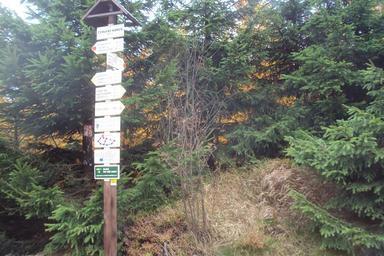 Keywords: Rozcestník Červený kámen.JPG cs Rozcestník na svazích Ještědu own Zákupák 2013-10-12 Terasy Ještědu Hiking and footpath fingerposts in Liberec District