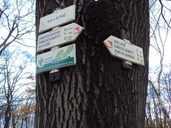 Keywords: Rozcestník Teplice Letná.jpg cs Rozcestník na vrchu Letná v Teplicích own Zákupák 2010-11-14 Letná Teplice Hiking and footpath fingerposts in Teplice District