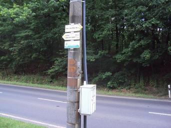 Keywords: Rozcestník u nádraží Zahrádky.JPG cs Rozcestník před nádražím u silnice own Zákupák 2013-07-07 Zahrádky u České Lípy train station Hiking and footpath fingerposts in Zahrádky