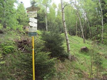 Keywords: Rozcestník u stanice Jedlová.JPG cs Za vlakovou zastávkou Jedlová je rozcestník KČT own Zákupák 2013-05-11 Hiking and footpath fingerposts in Děčín District Jedlová Lusatian Mountains