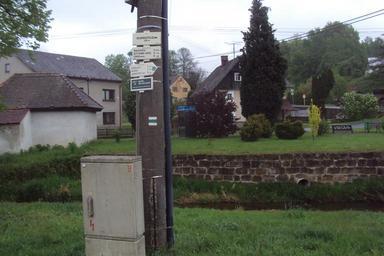 Keywords: Rozcestník v Kunraticích.JPG cs Rozcestník je vedle obecního úřadu own Zákupák 2014-05-07 Kunratice u Cvikova Hiking and footpath fingerposts in Česká Lípa District