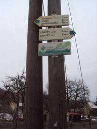Keywords: Rozcestník Zákupy 2.JPG cs Rozcestník - směrovka pod zákupským zámkem own Zákupák 2013-03-26 Borská Zákupy Hiking and footpath fingerposts in Zákupy