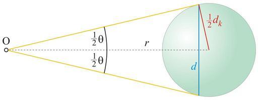 Keywords: Rozk3.svg en Angular diameter of sphere small distance - to derive of equation pl Rozmiar kątowy kuli own Mpfiz Angular diameter diagrams