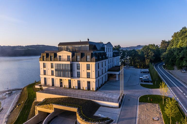 Keywords: roznowskie lake pictures of drone picture from the air aerial photos aerial photo shooting with drone poland photograph from the air lakeside hotel photo of a bird filming with a drone