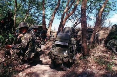 | Keywords: RP Marines assault preparation DM-SD-03-05655.JPEG Philippine Marines armed with a 5 56mm M16A1 assault rifles prepare to assaults a defensive position held by USMC personnel during a mock assault at Marine Base Ternate during Exercise BALIKATAN 2000 BALIKATAN 2000 is a joint combined field training exercise held between US and Philippines forces and is the largest of its kind since 1995 High resolution download from http //www dodmedia osd mil/DVIC_View/Still_Details cfm SDAN DMSD0305655 JPGPath /Assets/Still/2003/Marines/DM-SD-03-05655 JPG 2000-02-25 Sgt Jason M Carter PD-USGov-Military-Navy 2000 photographs Files by User BrokenSphere Philippine Marine Corps Balikatan 2000 Males with M16 rifle Images from US Navy location Marine Base Ternate Philippines |
