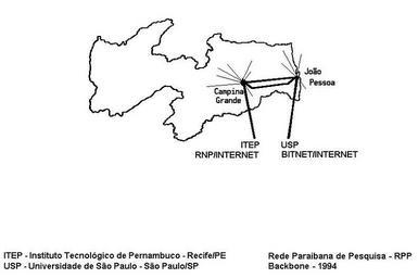 | Keywords: Rpp-bkb1994.jpg Pt Criado para ilustrar o texto da história da internet na Paraíba É uma ilustração simples Própria Eder Santos Moura 2009-02 O trabalho é meu Campina Grande Maps of João Pessoa Internet in Brazil Internet infrastructure Internet history Maps of Paraíba Maps in Portuguese |