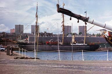 | Keywords: RRS-Discovery-in-Victoria-Dock-Dundee-1986-1.jpg en RRS Discovery in Victoria Dock Dundee now the site of City Quay shortly after returning to Dundee in 1986 and before it moved to Discovery Point Note HMS Unicorn's mast protruding at the right-hand side The five multis multi-storey flats in the background- four in a row and another in the distance- have all since been demolished own Scanned colour negative Smonoking summer 1986 56 27 37 99 N 2 57 40 56 W region GB_heading NW Notes; usual brightness and colour adjustments but aside from IR dust removal no details modified And yes the composition of this photo is dire- but it does serve the purpose of showing Discovery in its old location if little else Discovery ship 1901 HMS Unicorn ship 1824 Highrise buildings in Dundee 1986 in Dundee |